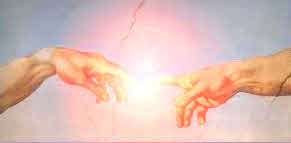 " Wenn wir diese Heilungsenergie nutzen, so tun wir mehr als nur ein bestimmtes Problem in Ordnung bringen: wir verbinden buchstäblich Stränge - Stränge der Desoxyribonnukleinsäure (DNS). Die DNS ist ein zusammengesetztes Molekül, das aus zwei Strängen besteht, die in Form einer sich spiralförmigen bewegenden Doppelhelix verbunden sind, vergleichbar mit einer verdrehten Leiter. Die Wissenschaft sagt, daß jeder Mensch diese zwei Stränge in jedem DNS-Molekül seines Körpers hat und diese Schnittstelle ist die Basis unseres genetisches Codes oder der Blaupause".